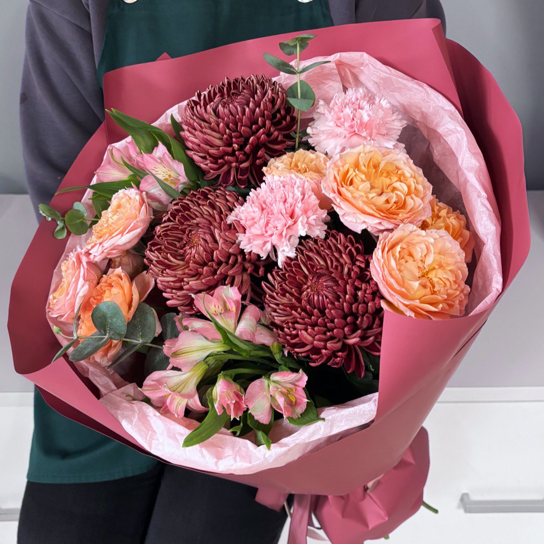 Большой выбор: В нашем каталоге вы найдете классические букеты цветов из роз, лилий, тюльпанов, а также стильные авторские композиции из пионов, орхидей, фрезий и других цветов.